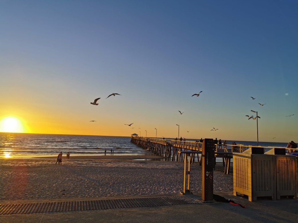 Whether sunset or no sunset, taking a dip and chilling on Glenelg, Adelaide’s most popular beach is not a bad idea.