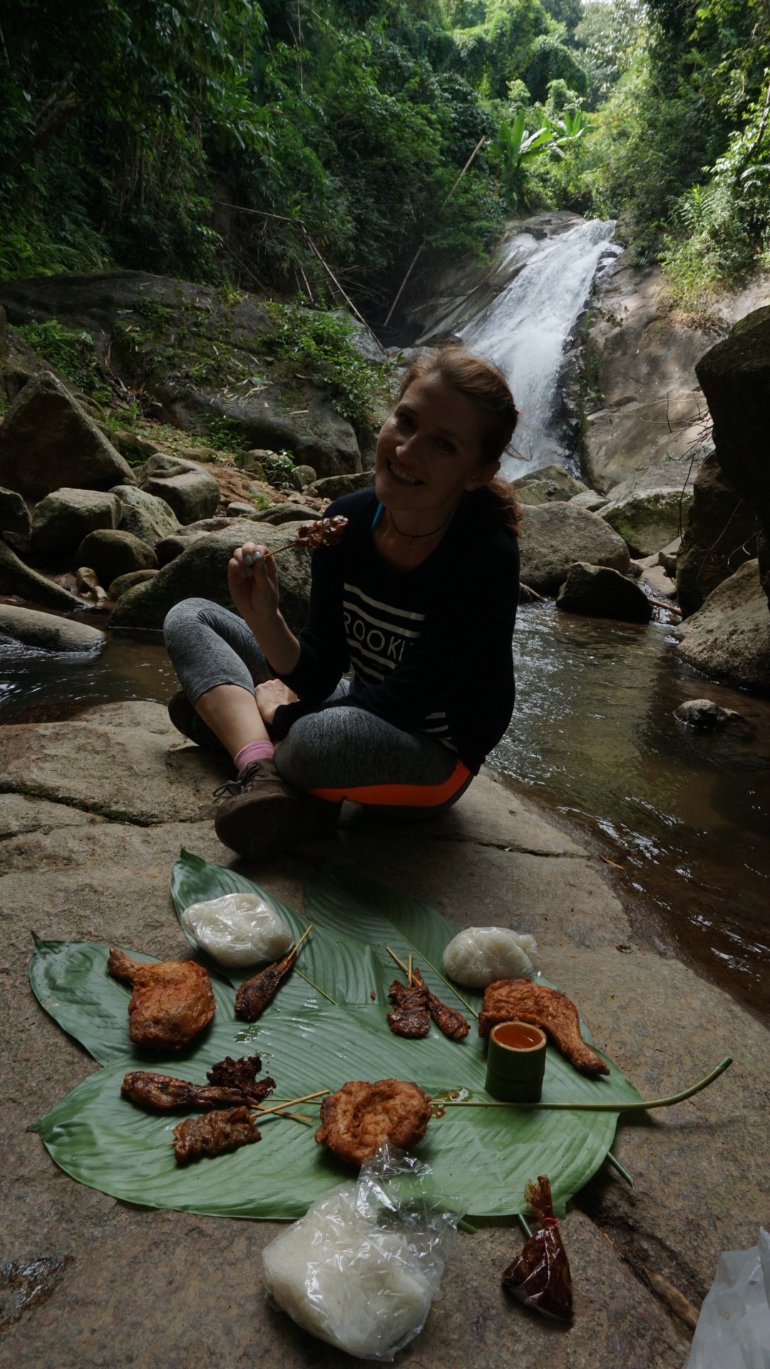 Our guide spoke quite a broken English and had a rather fast trekking rhythm, but he had one amazing quality that I remember and probably will remember forever: he prepared us absolutely delicious meal in the middle of the nature and using as pot only bamboo that he cut himself . Our lunch table was a big rock at the waterfall and the table setting was a big leaf, cutlery some bamboo chopsticks. Nothing fancy, but certainly a lunch that I enjoyed very much.